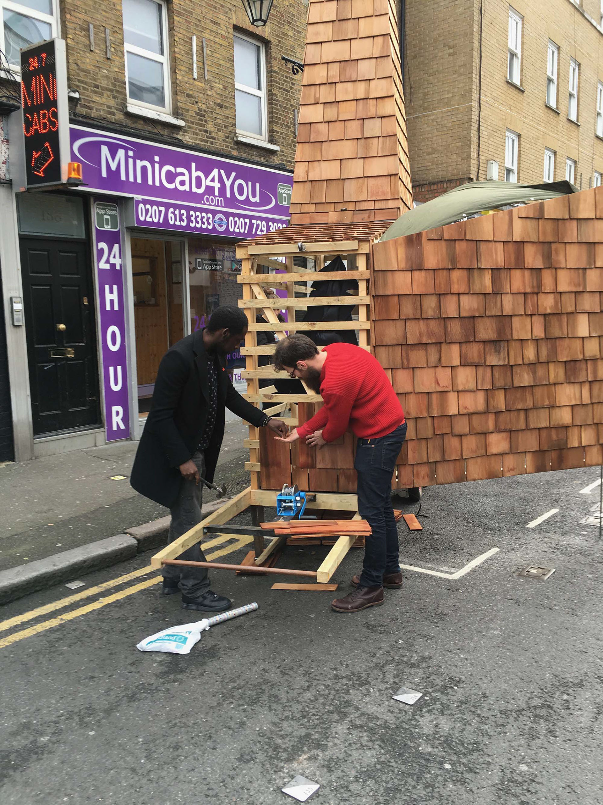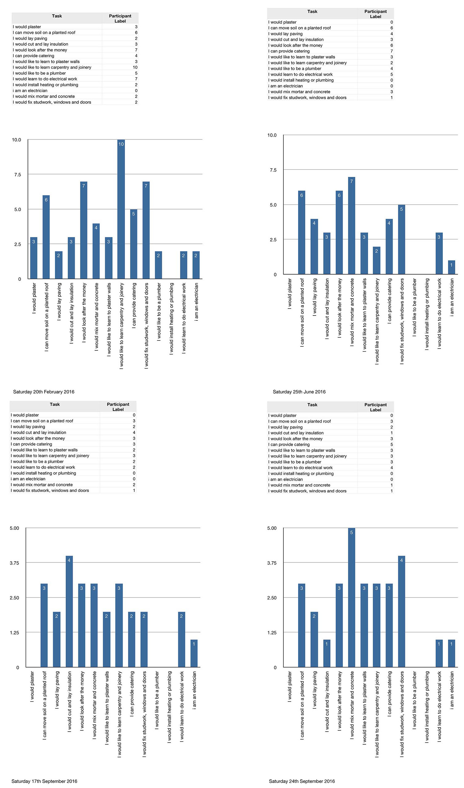 Doctoral research undertaken by William Hodgson at the Bartlett School of Architecture attempted to establish the willingness of local residents in Hoxton to undertake self-building. A market stall containing a drawing showing activities was used to measure types of work people might consider.