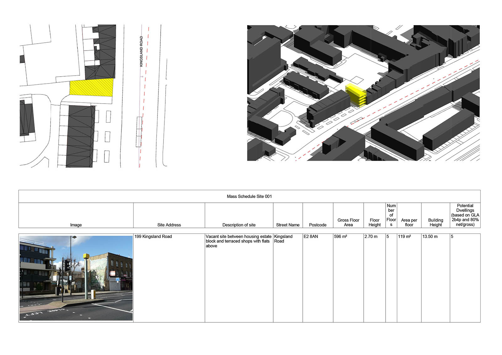 A hypothetical volume was added to all the sites identified which took broad account of the heights of neighbouring buildings, right to light which might affect planning permission and the general context. An approximate number of dwellings could then be calculated based on the Mayor of London's housing standards. The site shown is currently vacant.