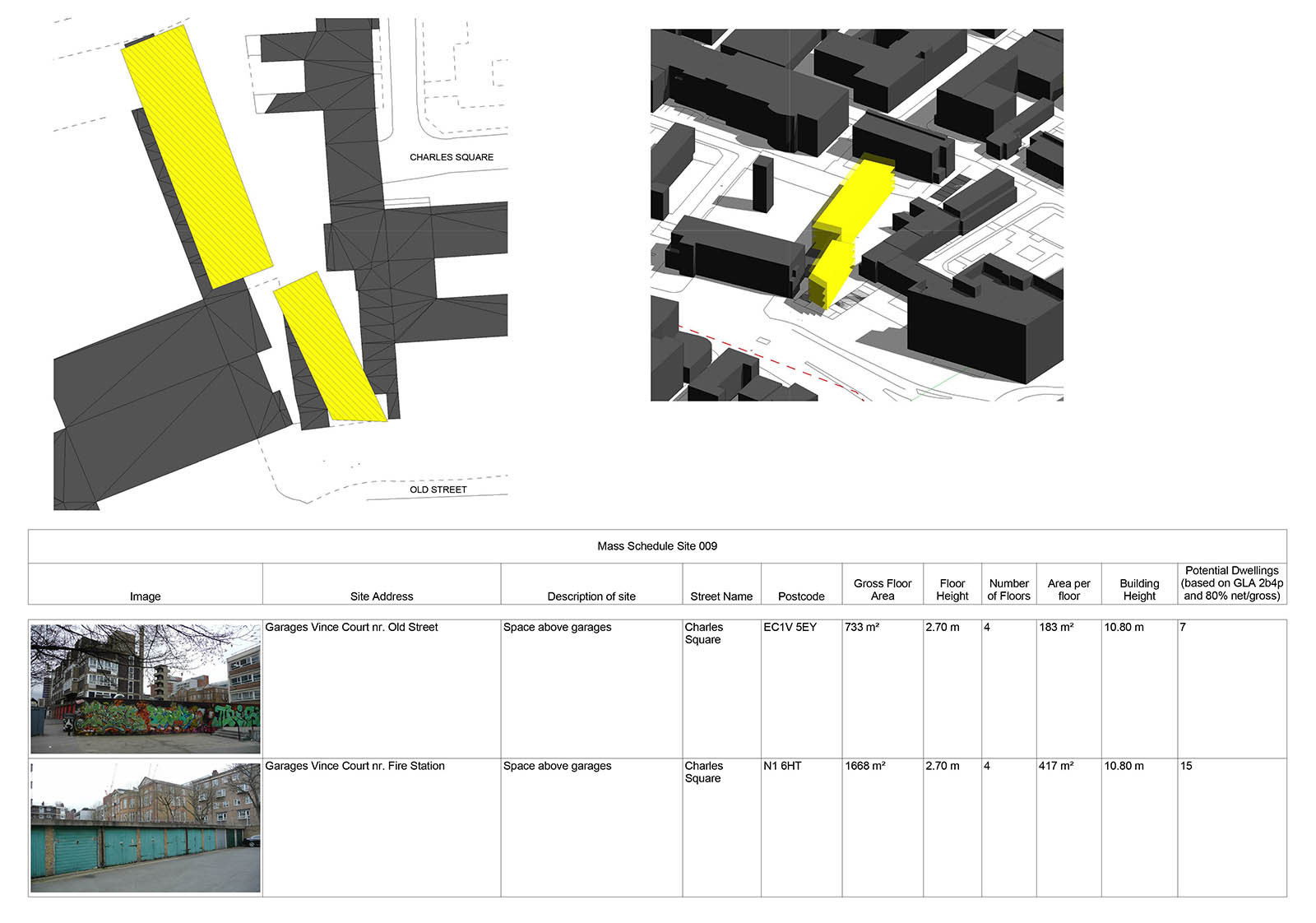 This site is currently occupied by under-used single story garages. If the volume shown is added it could provide up to 22 homes with two bedrooms which could each be occupied by four people.