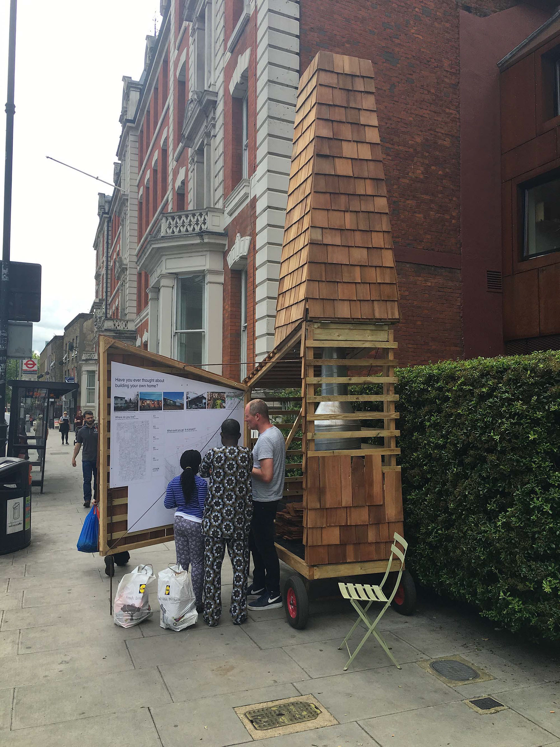 Doctoral research undertaken by William Hodgson at the Bartlett School of Architecture attempted to establish the willingness of local residents in Hoxton to undertake self-building. A market stall containing a drawing showing activities was used to measure types of work people might consider.